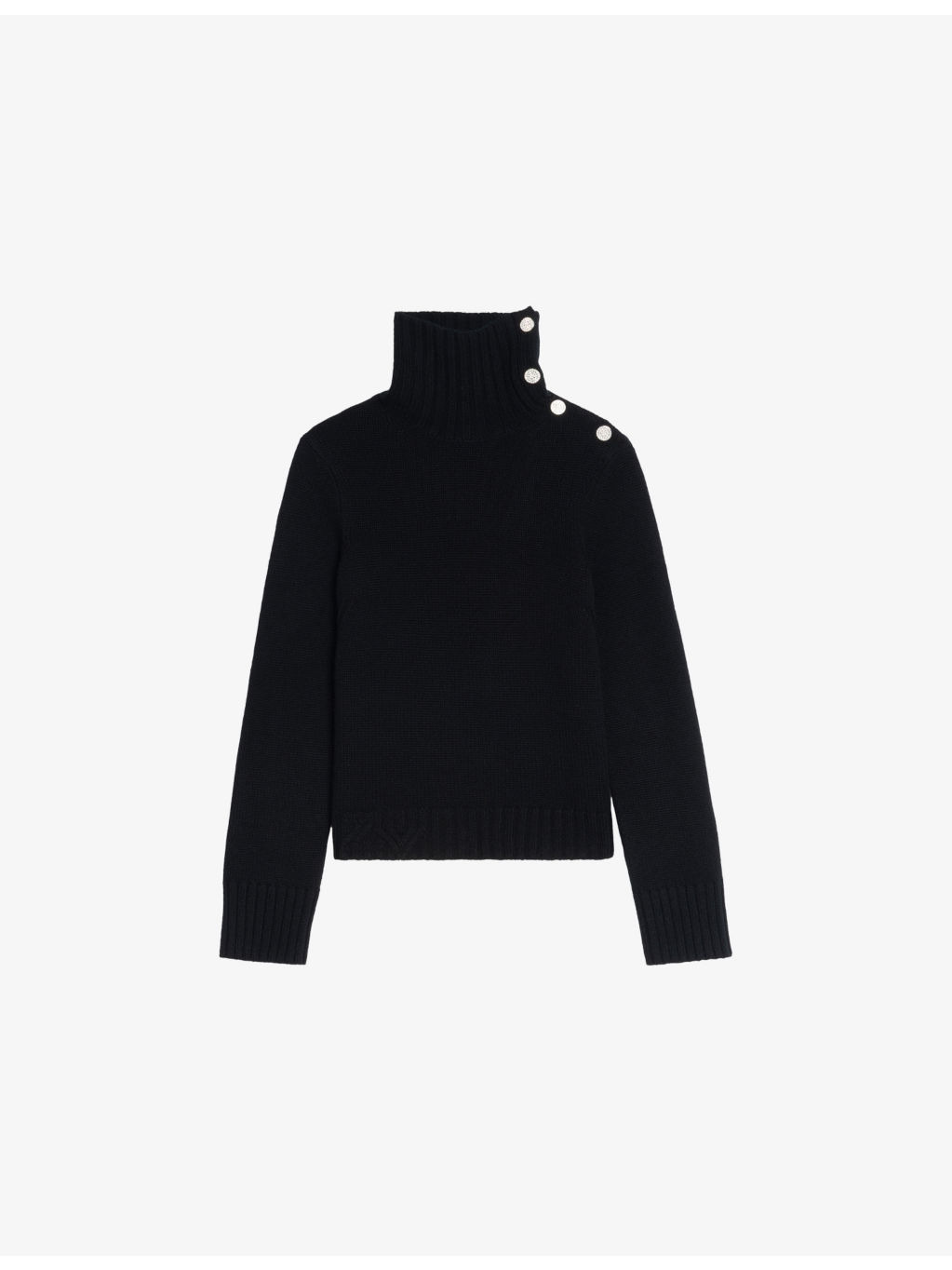 PRODUCT DETAILS - Zadig&Voltaire cashmere jumper - 100% cashmere - Button fastening - Regular fit, high-neck, diamante-embellished buttons, long sleeves, ribbed trims, knitted - Hand wash - True to size - Model is 5ft 10in/1.78m and wears a size small - Midweight, slight stretch Ref: R04535021
