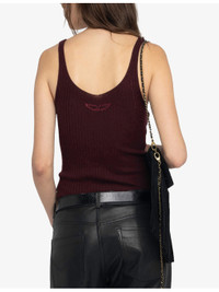 PRODUCT DETAILS - Zadig&Voltaire cashmere tank top - 100% cashmere - Slim fit, V-neckline, thin shoulder straps, wings embroidery at back, frayed hem, all-over ribbed knit - Hand wash - True to size - Model is 5ft 9in/1.75m and wears a size small - Lightweight, slight stretch Ref: R04489491