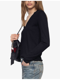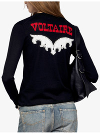 PRODUCT DETAILS - Zadig&Voltaire merino-wool jumper - 100% merino wool - Regular fit, V-neck, long sleeves, intarsia branding at back, rhinestone-embellished intarsia pattern at back - Hand wash - True to size - Model is 5ft 10in/1.78m and wears a size small - Lightweight, non-stretch Ref: R04501335