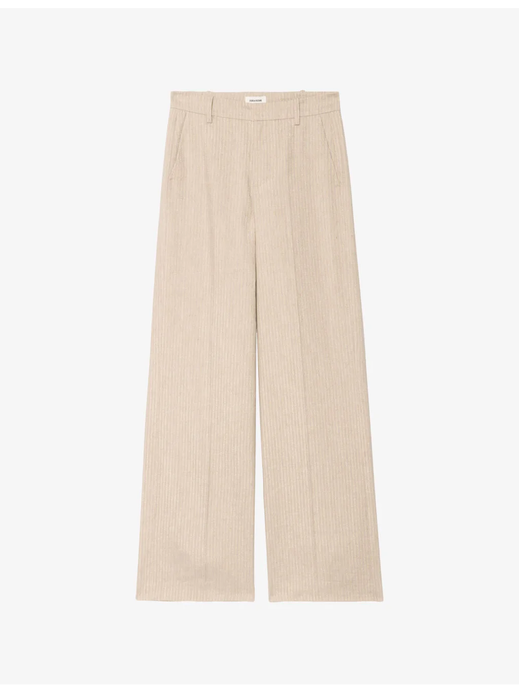 PRODUCT DETAILS - Zadig&Voltaire cotton and linen-blend blazer - 54% linen, 44% cotton, 1% polyamide, 1% polyester - Button, hook-and-eye and zip-fly fastening - Regular fit, mid-rise, belt loops, two pockets at the side, all-over stripes, wide leg - Dry clean - True to size - Model is 5ft 10in/1.78m and wears a size 36 - Midweight, non-stretch Ref: R04611400