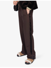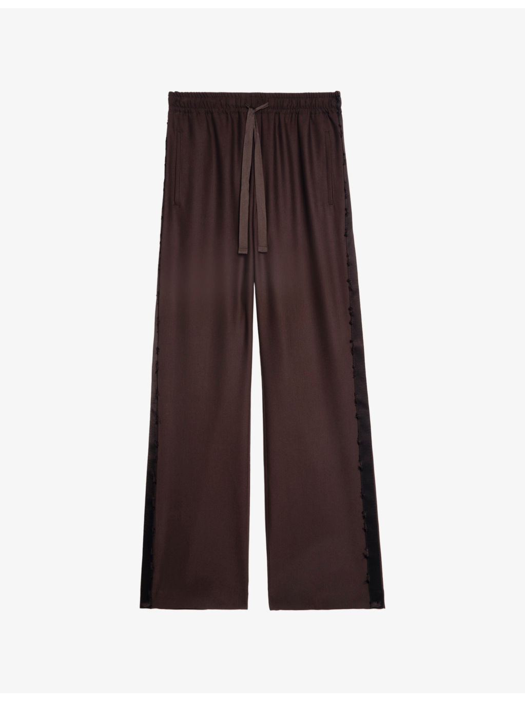 PRODUCT DETAILS - Zadig&Voltaire stretch-woven trousers - 69% polyester, 23% viscose, 8% elastane - Relaxed fit, elasticated drawstring waistband, low rise, satin side stripes, straight leg, two side pockets, two patch pockets at back - Hand wash - True to size - Model is 5ft 10in/1.78m and wears a size small - Lightweight, slight stretch Ref: R04503000