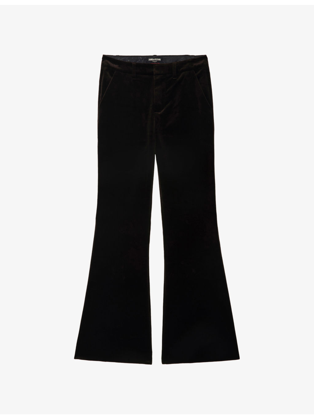 PRODUCT DETAILS - Zadig&Voltaire cotton-velvet trousers - 100% cotton - Concealed hook-and-eye and zip-fly fastenings to the front - Regular fit, mid rise, belt loops, all-over velvet texture, flared leg, two side pockets, two welt pockets to the back - Dry clean only - This style runs small. For those who are in between sizes, we suggest you go one size up - Model is 5ft 9in/1.75m and wears a size UK 8 - Midweight, non-stretch Ref: R04347299