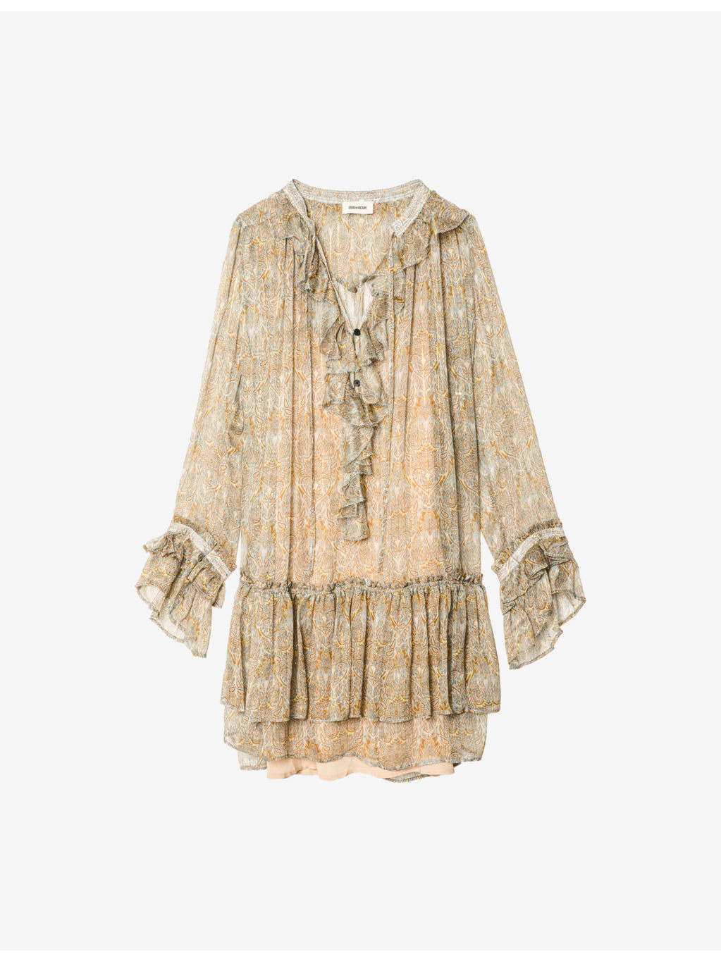 PRODUCT DETAILS - Zadig&Voltaire chiffon mini dress - 97% polyester, 3% metallic fibres - Button fastening - Regular fit, V-neck, long sleeves, ruffle cuffs, ruffle trims, all-over branded floral pattern - Hand wash - True to size - Model is 5ft 10in/1.78m and wears a size small - Lightweight, non-stretch Ref: R04509803