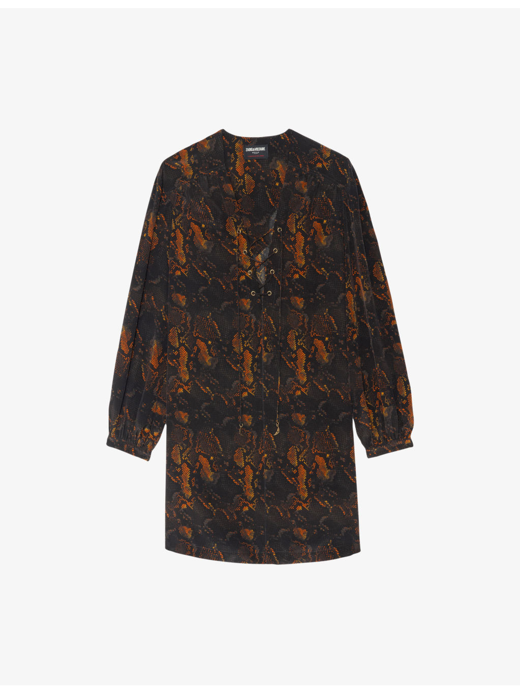 PRODUCT DETAILS - Zadig&Voltaire silk dress - 100% silk - Self-tie fastening - Regular fit, V-neck with lace detail, long balloon sleeves, all-over graphic print - Hand wash - True to size - Model is 5ft 9in/1.75m and wears a size small - Lightweight, non-stretch Ref: R04550628