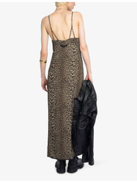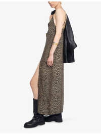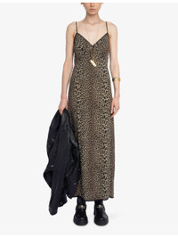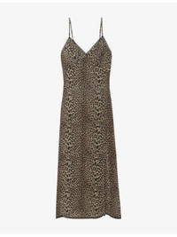 PRODUCT DETAILS - Zadig&Voltaire woven midi dress - 100% viscose - Regular fit, V-neck, sleeveless, adjustable straps, split hem, branded embroidery to back, all-over leopard print - Machine wash mild - True to size - Model is 5ft 11in/1.80m and wears a size small - Lightweight, non-stretch Ref: R04508140