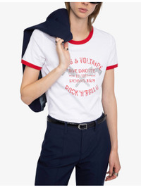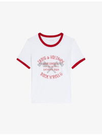 PRODUCT DETAILS - Zadig&Voltaire cotton T-shirt - 100% cotton - Regular fit, round neck, short sleeves, coat-of-arms print with rhinestone embellishment, contrast trims - Machine wash at 30°C - True to size - Model is 5ft 10in/1.78m and wears a size small - Lightweight, non-stretch Ref: R04496102