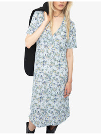 PRODUCT DETAILS - Zadig&Voltaire woven dress - 100% viscose - Concealed zip fastening at the back - Regular fit, V-neck, short sleeves, all-over floral print - Hand wash - True to size - Model is 5ft 8in / 1.73m and wears a size small - Lightweight, non-stretch Ref: R04477294
