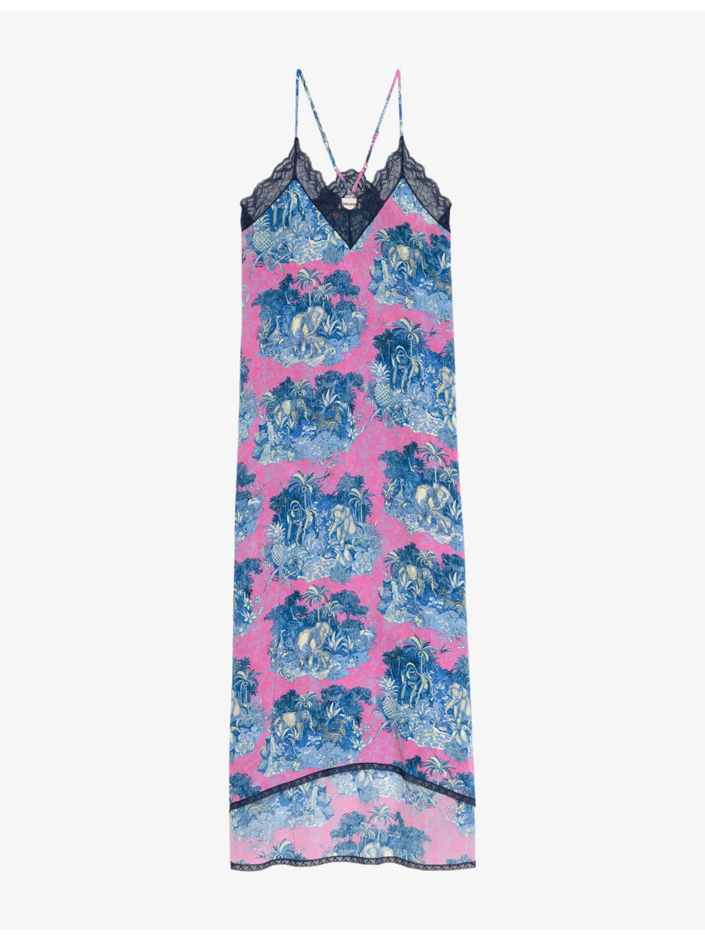 PRODUCT DETAILS - Zadig&Voltaire woven dress - 100% viscose - Relaxed fit, adjustable spaghetti straps, v-neck, lace trims, all-over floral-print jacquard, curved hem - Hand wash - True to size - Model is 5ft 10in/1.78m and wears a size small - Lightweight, non-stretch Ref: R04615536