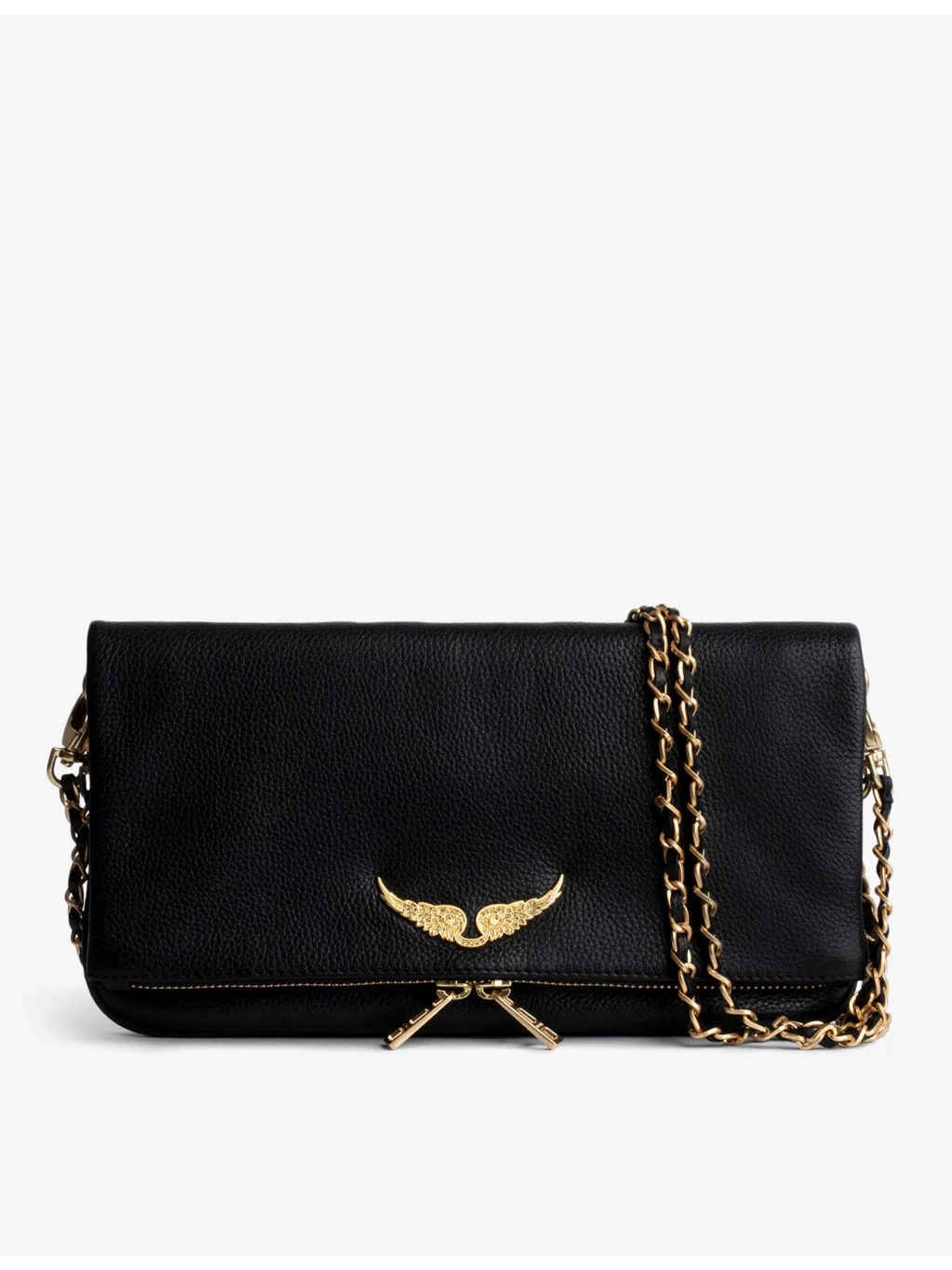 PRODUCT DETAILS - Zadig & Voltaire leather clutch - 100% leather - Zip fastening - Dimensions: Height 13cm, width 27cm - Detachable chain shoulder strap, top flap, rhinestone-embellished wings motif at front, zip pocket to the back, multiple compartments - Specialist leather clean Ref: R03910521