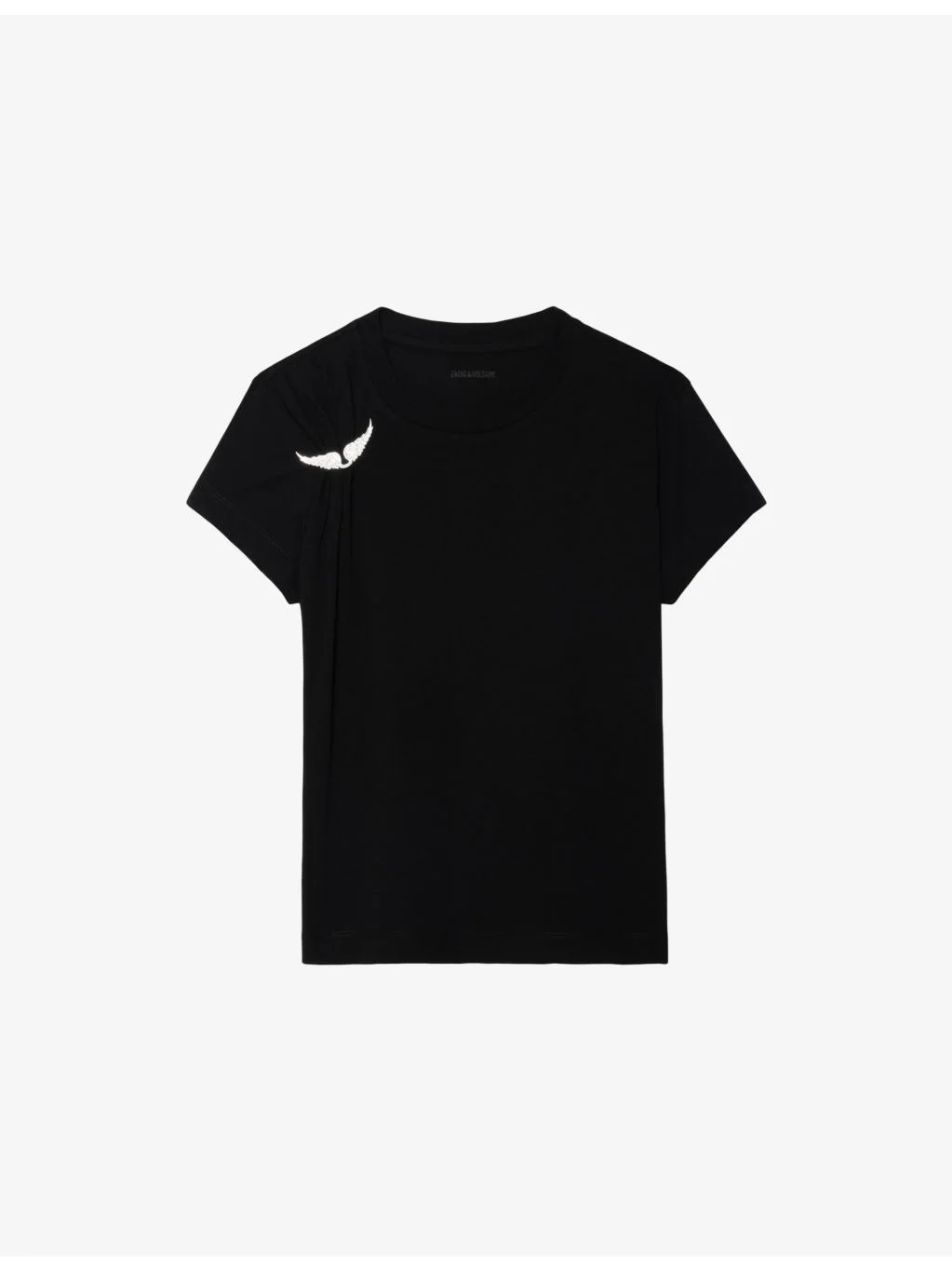 PRODUCT DETAILS - Zadig&Voltaire cotton-jersey T-shirt - 100% cotton - Regular fit, round neck, short sleeves, rhinestone-embellished wings brooch, pleated at shoulder - Machine wash cold - True to size - Model is 5ft 10in/1.78m and wears a size small - Lightweight, non-stretch Ref: R04601312