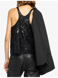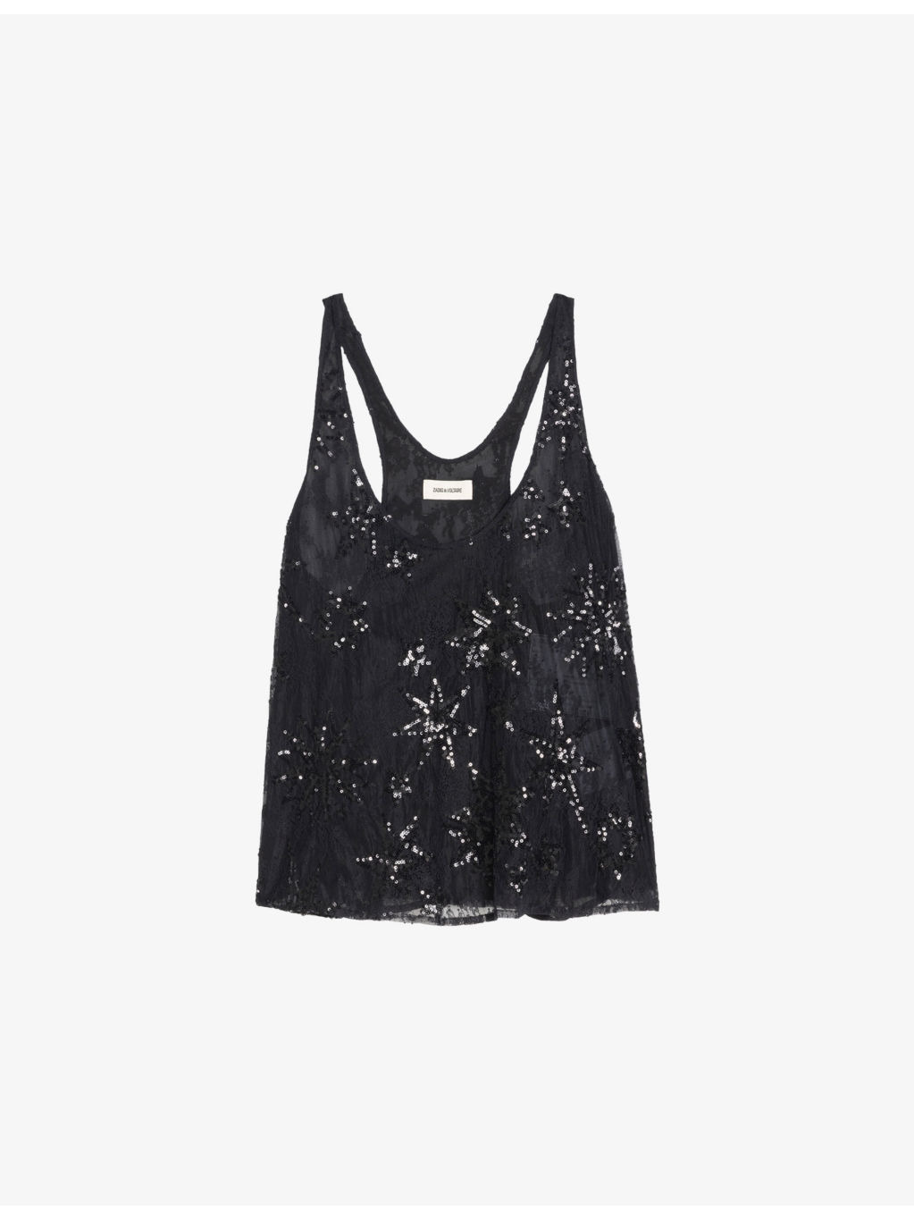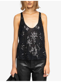 PRODUCT DETAILS - Zadig&Voltaire woven top - 100% polyamide - Relaxed fit, scoop-neck, sleeveless, racerback, all-over embellishment - Machine wash mild - True to size - Lightweight, non-stretch Ref: R04550638