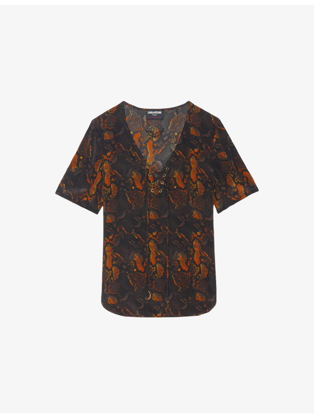 PRODUCT DETAILS - Zadig&Voltaire silk blouse - 100% silk - Self-tie fastening - Regular fit, V-neck with lace detail, long sleeves, all-over animal print - Hand wash - True to size - Model is 5ft 9in/1.75m and wears a size small - Lightweight, non-stretch Ref: R04550639