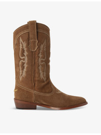 PRODUCT DETAILS - Zadig & Voltaire suede Western boots - 100% suede - Slips on - Pointed toe, pull tabs, all-over embroidery, low heel - Heel height 1.3"" - Specialist leather clean - Upper: 100% suede - Lining: 100% synthetic - Sole: 100% synthetic Ref: R04406111