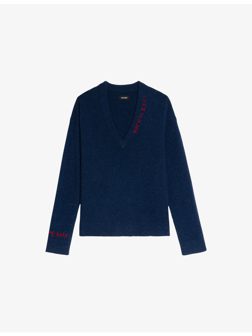 PRODUCT DETAILS - Zadig&Voltaire cashmere knitted jumper - 100% cashmere - Relaxed fit, V-neckline, long sleeves, contrast text embroidery, brushed texture, ribbed trims - Hand wash cold - True to size - Model is 5ft 10in/1.78m and wears a size small - Lightweight, stretchy Ref: R04456182