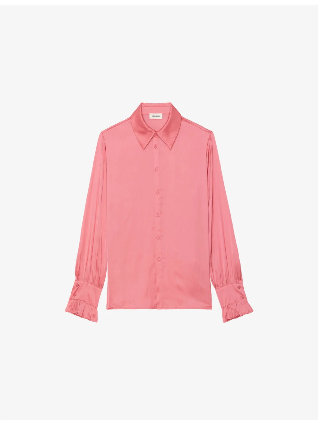 PRODUCT DETAILS - Zadig&Voltaire satin shirt - 100% polyester - Exposed button fastening at front - Regular fit, collar, long sleeves, satin texture, buttoned cuffs, frilled trims to cuffs, rhinestone-embellished wings motif at back - Hand wash - True to size - Model is 5ft 9in/1.75m and wears a size small - Lightweight, non-stretch Ref: R04404979