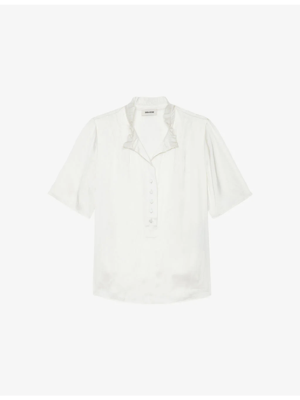 PRODUCT DETAILS - Zadig&Voltaire satin top - 100% polyester - Button fastening - Regular fit, frill collar, short sleeves - Hand wash - True to size - Model is 5ft 9in/1.75m and wears a size small - Lightweight, non-stretch Ref: R04435810