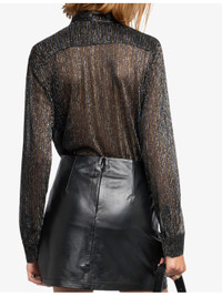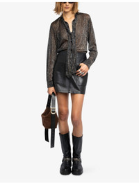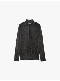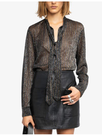PRODUCT DETAILS - Zadig&Voltaire woven shirt - 52% polyester, 48% metallic fibres - Regular fit, tie detail at the neck, long sleeves, all-over metallic finish - Hand wash - True to size - Model is 5ft 9in/1.75m and wears a size small - Lightweight, non-stretch Ref: R04545131