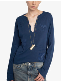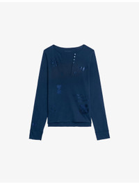 PRODUCT DETAILS - Zadig&Voltaire cotton T-shirt - 100% cotton - Regular fit, Henley collar, long sleeves, all-over rhinestone embellishment - Machine wash at 30°C - True to size - Model is 5ft 10in/1.78m and wears a size small - Lightweight, non-stretch Ref: R04498043