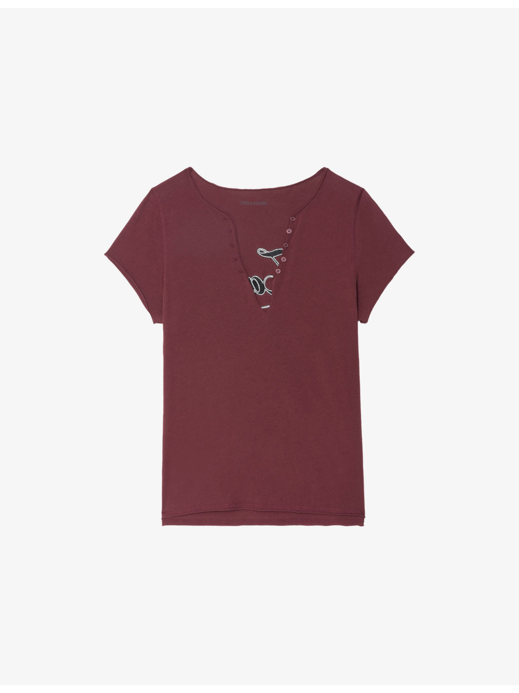 PRODUCT DETAILS - Zadig&Voltaire cotton-jersey T-shirt - 100% cotton - Regular fit, Henley collar with buttons, short sleeves, branded rhinestone embellishment to back - Machine wash mild - True to size - Model is 5ft 10in/1.78m and wears a size small - Lightweight, slight stretch Ref: R04511334