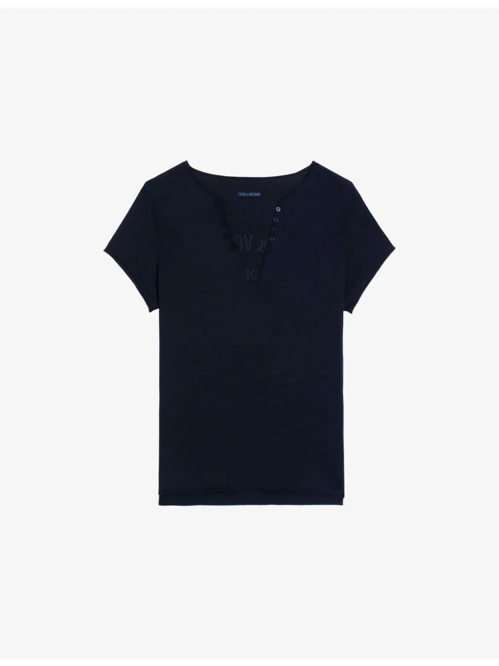 PRODUCT DETAILS - Zadig&Voltaire cotton T-shirt - 100% cotton - Regular fit, Henley neck, short sleeves, logo print at the back - Machine wash at 30°C - True to size - Model is 5ft 9in/1.75m and wears a size UK 8 - Lightweight, non-stretch Ref: R04614514