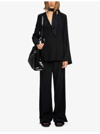 PRODUCT DETAILS - Zadig&Voltaire woven blouse - 100% viscose - Relaxed fit, deep V neck, long sleeves, rhinestone embellishment - Hand wash - True to size - Model is 5ft 9in/1.75m and wears a size small - Lightweight, non-stretch Ref: R04547024