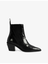 PRODUCT DETAILS - Zadig&Voltaire leather heeled ankle boots - 100% leather - Ankle rise, side elasticated panels, all-over star embellishment, pointed toe, block heel - Specialist leather clean - Upper: 100% leather - Lining: 100% fabric - Sole: 100% synthetic Ref: R04550627