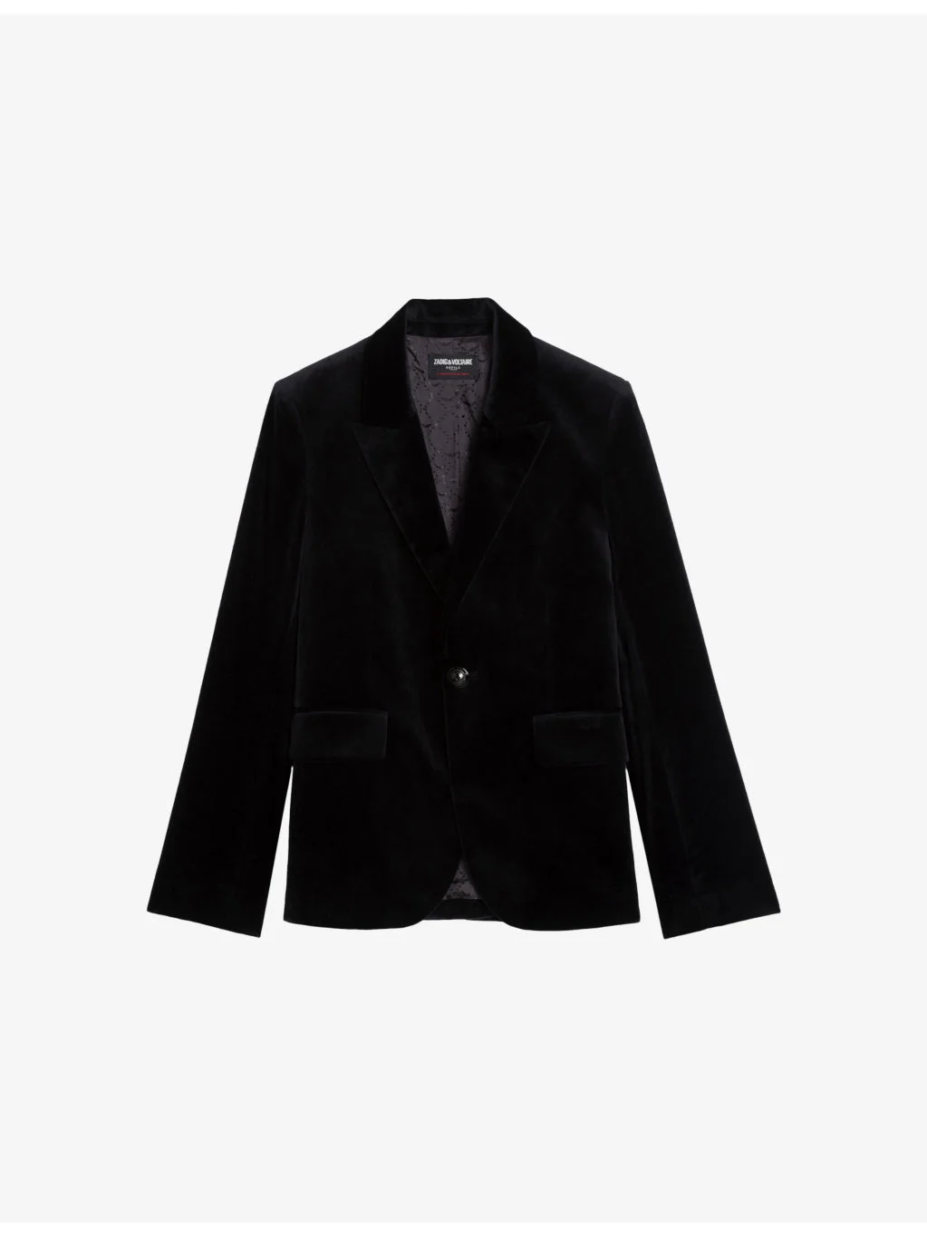 PRODUCT DETAILS - Zadig&Voltaire cotton-velvet blazer - 100% cotton - Exposed button fastenings to the front - Peak lapels, long sleeves, single breasted, padded shoulders, two flap pockets to the front, one interior pocket, single vent to the back - Dry clean only - This style runs small. For those who are in between sizes, we suggest you go one size up - Model is 5ft 9in/1.75m and wears a size small - Midweight, non-stretch Ref: R04347300