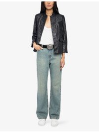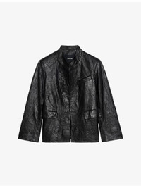 PRODUCT DETAILS - Zadig&Voltaire leather jacket - 100% leather - Slips on - Slim fit, round neck, long sleeves, two flap pockets at the side, all-over crinkled finish - Specialist leather clean - True to size - Model is 5ft 10in/1.78m and wears a size small - Midweight, non-stretch Ref: R04518553