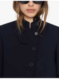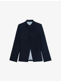 PRODUCT DETAILS - Zadig&Voltaire stretch-woven blazer - 69% polyester, 23% viscose, 8% elastane - Exposed button fastening at front - Regular fit, stand collar, long sleeves, padded shoulders, asymmetric front, rhinestone wings branding at collar, two welt pockets at front, buttoned cuffs, single vent to back hem - Dry clean only - True to size - Model is 5ft 10in/1.78m and wears a size UK 8 - Midweight, slight stretch Ref: R04493864