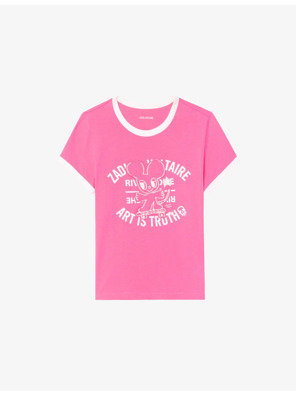 PRODUCT DETAILS - Zadig&Voltaire cotton-jersey T-shirt - 100% cotton - Regular fit, round neck, short sleeves, mouse crest print at front, contrast trims - Machine wash cold - True to size - Model is 5ft 11in/1.80m and wears a size small - Lightweight, non-stretch Ref: R04601321