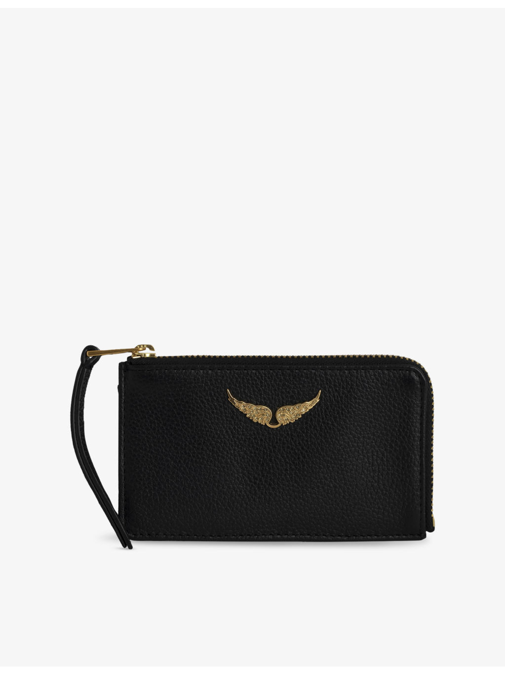 PRODUCT DETAILS - Zadig & Voltaire leather cardholder - 100% leather - Zip fastening - Wings logo plaque to the front, gold-toned hardware, grainy texture, four card slots, one flat pocket, one zipped pocket, embossed logo and ‘enjoy today’ lettering to the back - Height 7cm, width 10.5cm - Specialist leather clean Ref: R03910179