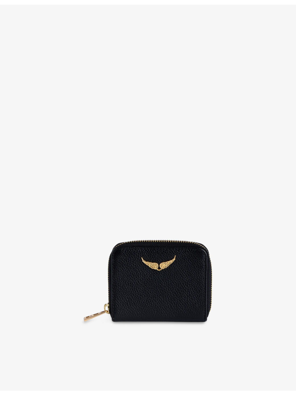PRODUCT DETAILS - Zadig & Voltaire leather coin purse - 100% leather - Zip fastening - Wings logo plaque to the front, gold-toned hardware, grainy texture, two internal coin compartments, embossed logo ‘enjoy today’ lettering to the back - Height 11cm, width 8.5cm - Specialist leather clean Ref: R03910260
