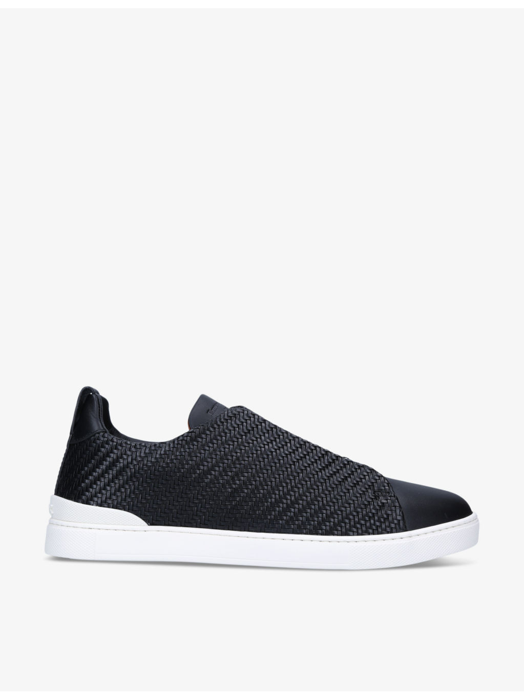 PRODUCT DETAILS - Ermenegildo Zegna leather trainers - 100% leather - Slips on - Round toe, woven upper, elasticated lace detail at tongue, contrasting sole - Specialist leather clean - Made in Italy - Upper: 100% leather - Lining: 100% leather - Sole: 100% rubber Ref: R03925143