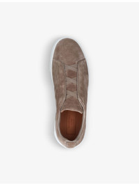 PRODUCT DETAILS - Ermenegildo Zegna suede trainers - Slips on - Round toe, contrast sole, pull-tab at heel - Made in Italy - Upper: 100% suede - Lining: 100% leather - Sole: 100% rubber Ref: R03666367
