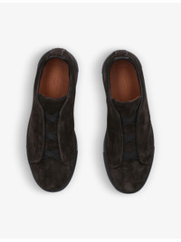 PRODUCT DETAILS - Ermenegildo Zegna leather and fabric trainers - Rubberized calfskin; flannel - Round toe, leather and fabric panels, tonal ribbon ""stitches"" at tongue, debossed branding at tongue, flat contrasting sole, flexible sole - Specialist leather clean - Made in Italy - Upper: Rubberized calfskin; flannel - Lining: 100% leather - Sole: 100% rubber Ref: R03948814