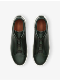 PRODUCT DETAILS - Ermenegildo Zegna leather low-top trainers - 100% calf leather - Slips on - Round closed toe, triple crossing-elastic laces, contrast sole, lightweight sole, removable footbed, brand-embossed tongue - Specialist leather clean - Upper: 100% leather - Lining: 100% leather - Sole: 100% rubber Ref: R04384727