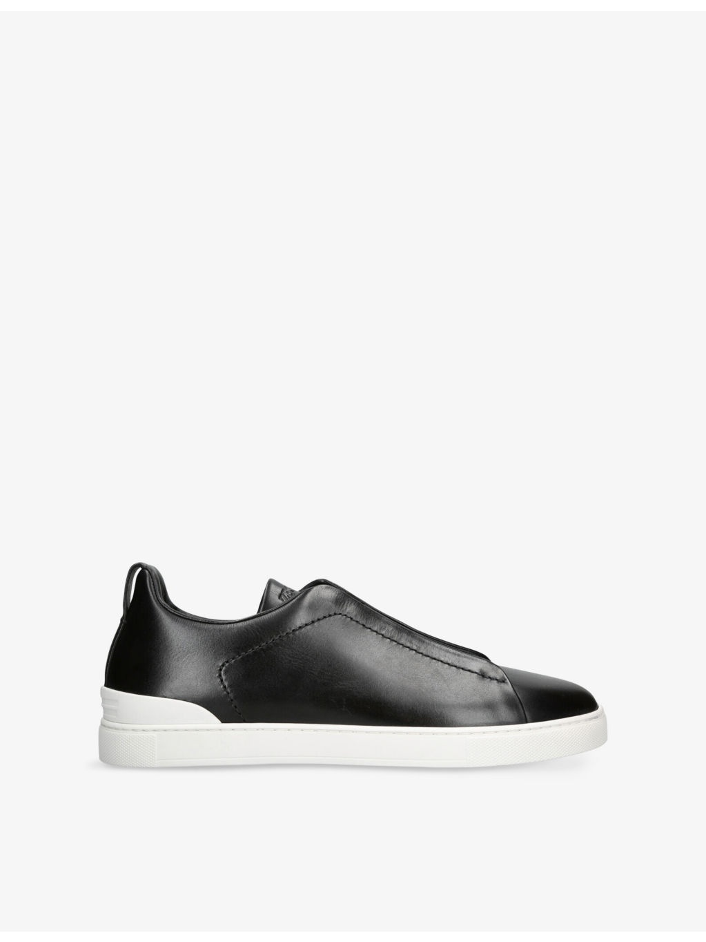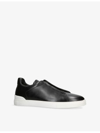 PRODUCT DETAILS - Ermenegildo Zegna leather low-top trainers - 100% calf leather - Slips on - Round closed toe, triple crossing-elastic laces, contrast sole, lightweight sole, removable footbed, brand-embossed tongue - Specialist leather clean - Upper: 100% leather - Lining: 100% leather - Sole: 100% rubber Ref: R04384723