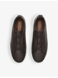 PRODUCT DETAILS - Ermenegildo Zegna leather low-top trainers - 100% leather - Pulls on - Round toe, brand text engraving at tongue, contrast sole - Specialist leather clean - Upper: 100% leather - Lining: 100% leather - Sole: 100% rubber Ref: R04379906