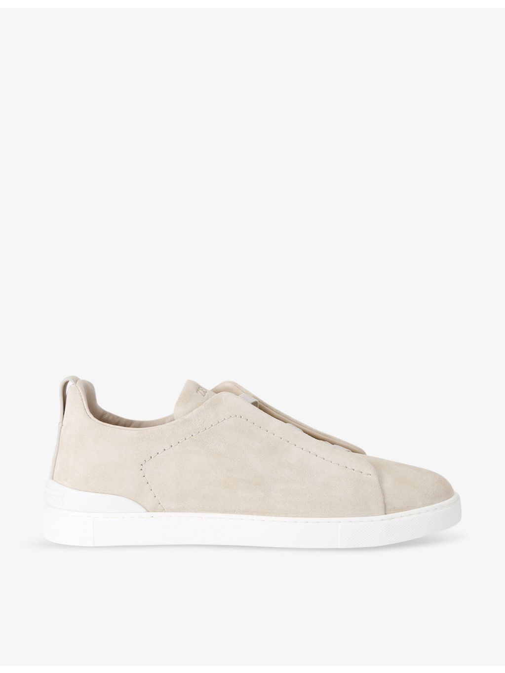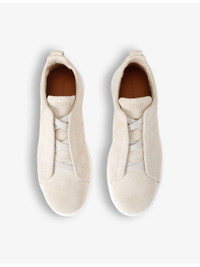 PRODUCT DETAILS - Ermenegildo Zegna suede low-top trainers - 100% suede - Slips on - Triple crossing-elastic laces, closed toe, round toe, contrast sole, lightweight sole, removable footbed, brand-embossed tongue - Specialist leather clean - Upper: 100% suede - Lining: 100% leather - Sole: 100% rubber Ref: R04318466