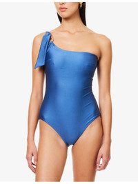 PRODUCT DETAILS - Zimmermann swimsuit - 80% polyamide, 20% elastane - Asymmetric shoulder, knot detail at shoulder with gold-tone hardware, shiny finish, lined - Hand wash cold - True to size - Model is 5ft 9in/1.75m and wears a size small - Lightweight, stretchy Ref: R04456949
