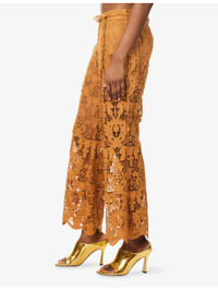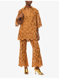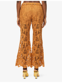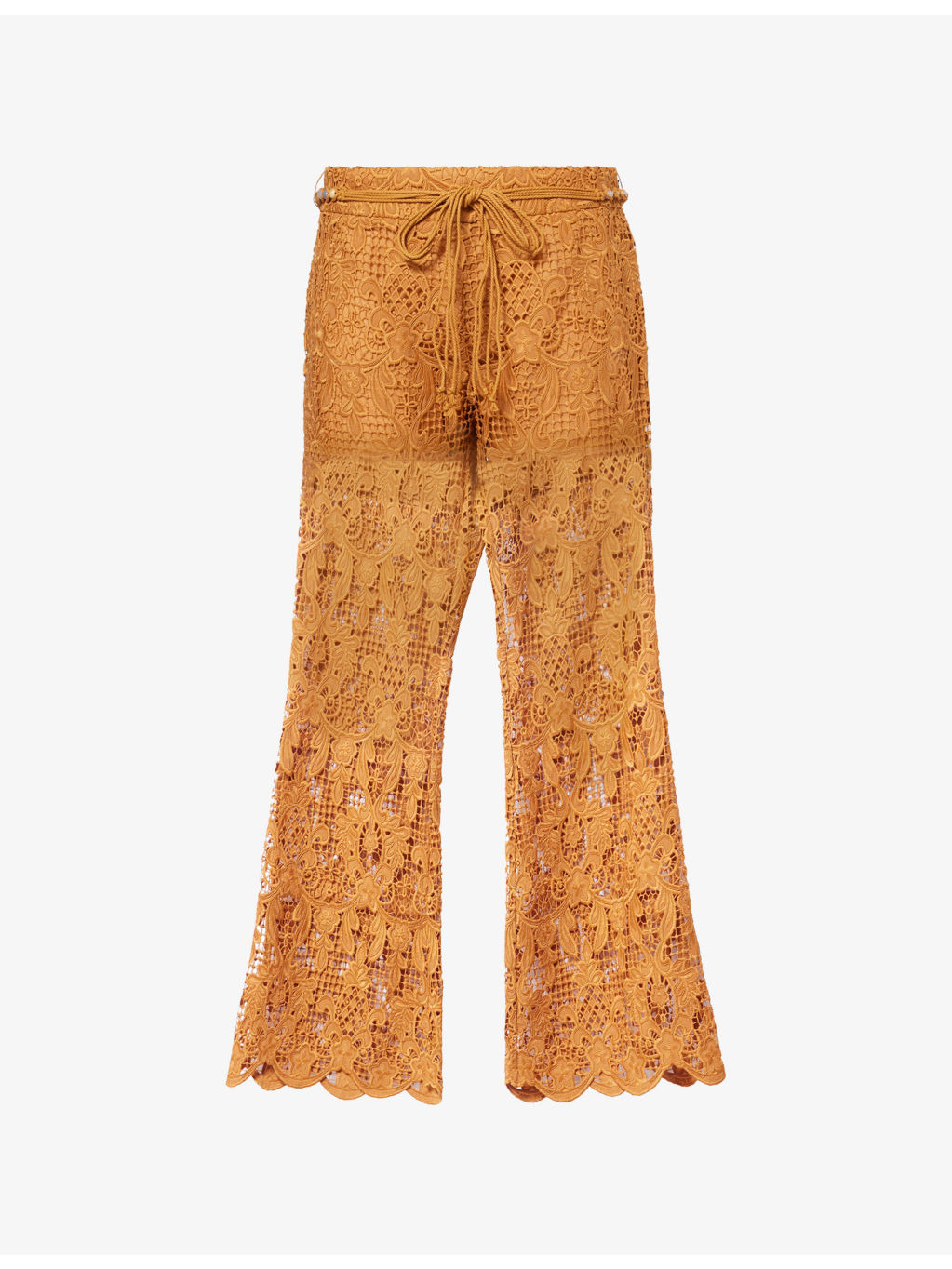 PRODUCT DETAILS - Zimmermann woven trousers - 100% polyester; lining 100% cotton - Concealed zip fastening at side - Regular fit, mid-rise, detachable beaded belt, all-over floral lace embroidery, partially lined, flared scalloped cuffs - Dry clean only - True to size - Size small: rise 11in / 29cm, inside leg 28in / 71cm, leg opening 24in / 61cm - Model is 5ft 10in/1.78m and wears a size small - Midweight, slight stretch Ref: R04465579