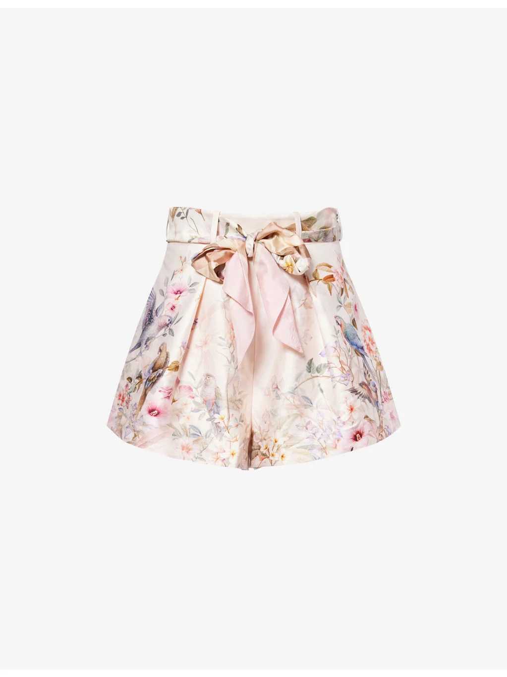 PRODUCT DETAILS - Zimmermann silk-and-cotton shorts - 53% silk, 47% cotton - Concealed zip fastening at back - Regular fit, high-rise, belt loops, matching belt, front pleats, side slip pockets, all-over floral pattern - Dry clean - True to size - Size UK 10: rise 15in 38cm, inside leg 2in / 5cm, leg opening 32in / 81.5cm - Model is 5ft 10in / 1.78m and wears a size UK 10 - Lightweight, non-stretch Ref: R04552647