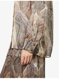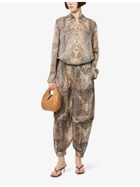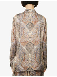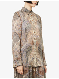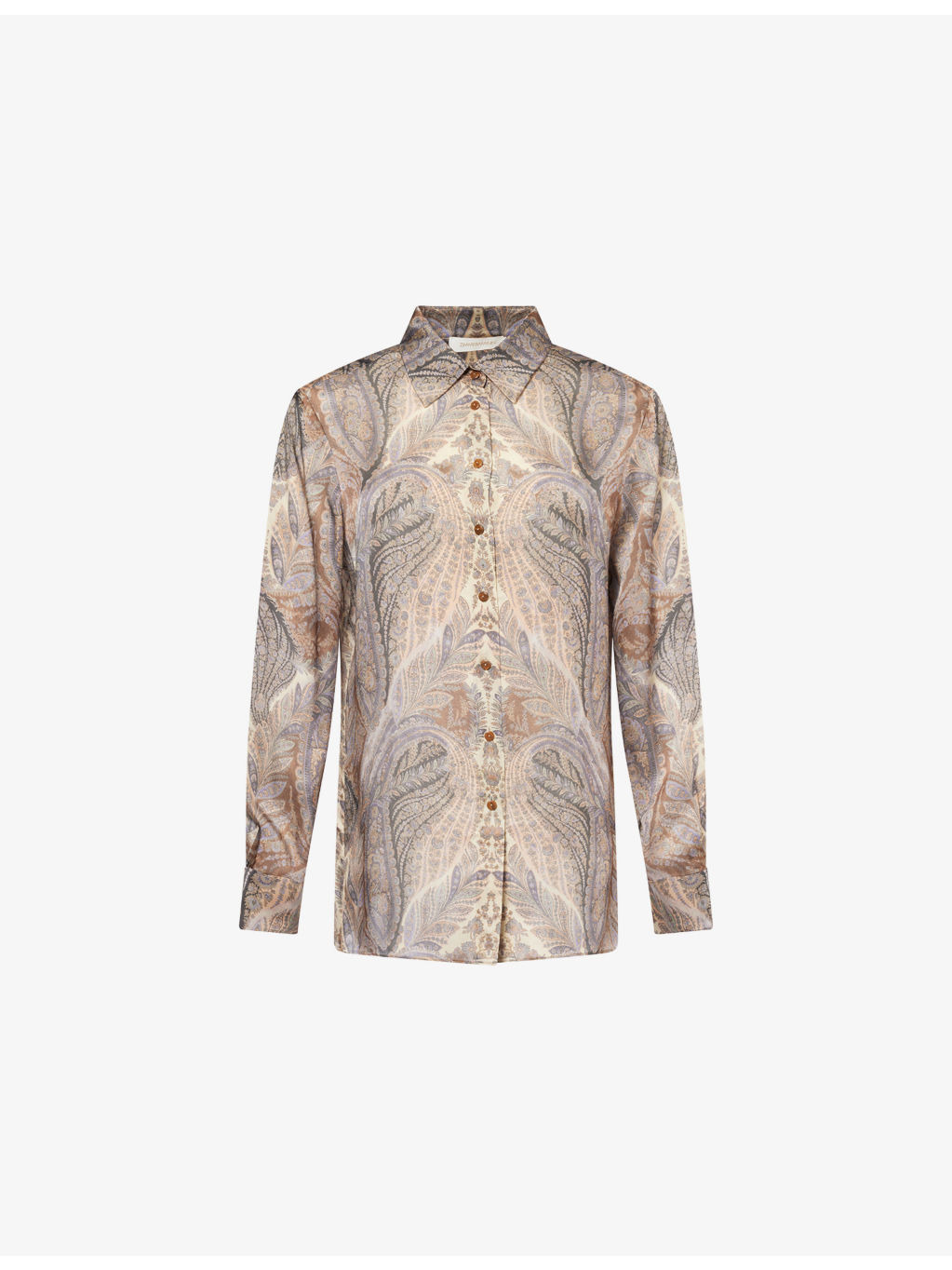 PRODUCT DETAILS - ZIMMERMANN Silk Shirt - 100% silk - Button fastening - Relaxed fit, classic collar, long sleeves, button cuffs, logo embroidery at chest - Dry clean only - True to size - Size small: length 28in /71.1cm - Model is 5ft 10in/1.78m and wears a size small - Lightweight, non-stretch Ref: R04504508