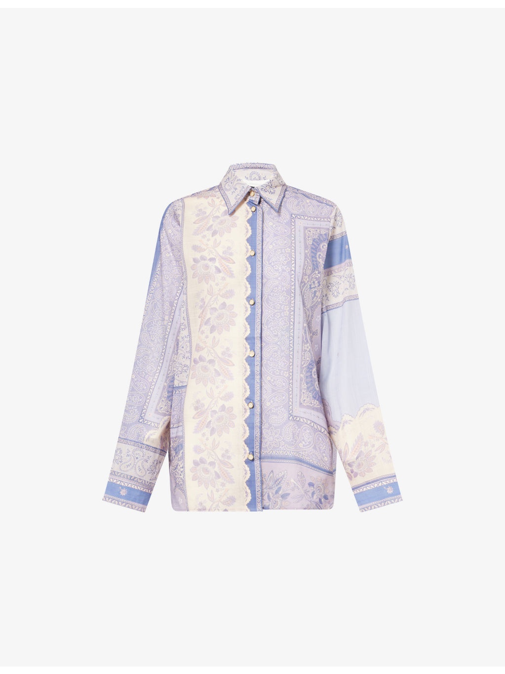 PRODUCT DETAILS - Zimmermann cotton shirt - 100% cotton - Exposed button fastening at front - Relaxed fit, classic collar, long sleeves, buttoned cuffs, all-over bandana print pattern - Dry clean only - True to size - Size 0: length 30in / 78cm - Model is 5ft 10in/1.78m and wears a size UK 8 - Lightweight, non-stretch Ref: R04465597
