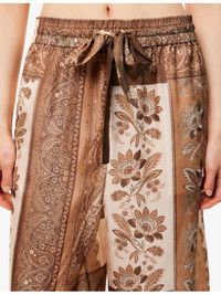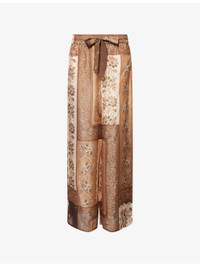 PRODUCT DETAILS - Zimmermann silk trousers - 100% silk - Relaxed fit, mid-rise, wide leg, drawstring elasticated waistband, side slip pockets, all-over graphic pattern - Dry clean - True to size - Size small: rise 11.4in / 29cm, inside leg 29.5in / 75cm - Model is 5ft 10in/1.78m and wears a size small - Lightweight, non-stretch Ref: R04465596