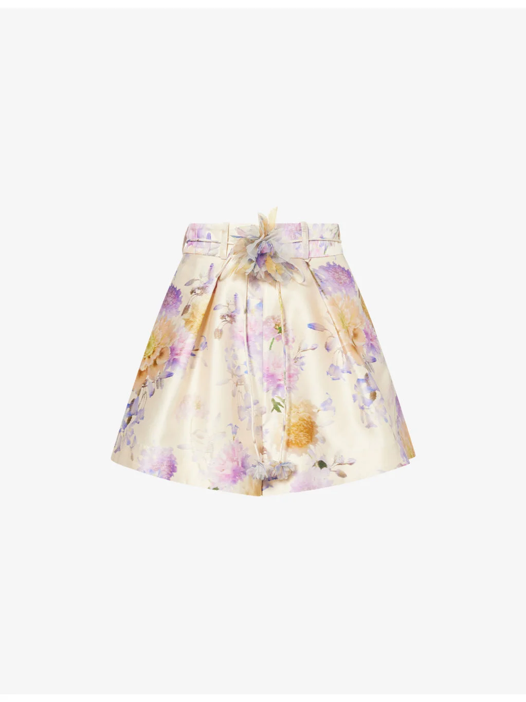 PRODUCT DETAILS - Zimmermann silk-blend shorts - 53% silk, 47% cotton; lining 100% viscose - Concealed zip fastening at back - Regular fit, high rise, belt loops, 3d flowers at self-tie waist belt, pin-tuck pleats at front, slip pockets at sides, all-over floral print, lined - Dry clean - True to size - Size small: length 16in / 40.5cm - Model is 5ft 10in/1.78m and wears a size small - Lightweight, non-stretch Ref: R04607603