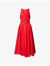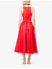 PRODUCT DETAILS - Zimmermann linen midi dress - 100% linen; lining 100% cotton - Concealed zip fastening - Regular fit, round neckline, sleeveless, pleat at front with cut-outs, bow at waist front, flared hem, lined - Dry clean only - True to size - Size small: length 52in / 132cm - Model is 5ft 10in/1.78m and wears a size small - Lightweight, non-stretch Ref: R04552693