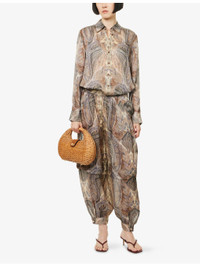 PRODUCT DETAILS - Zimmermann Silk Harem Trousers - 100% silk - Zip fastening - Harem fit, fitted waist, all-over print, cuffed hems with gold-tone button, lightweight - Dry clean only - True to size - Model is 5ft 10in/1.78m and wears a size small - Lightweight, non-stretch Ref: R04504530