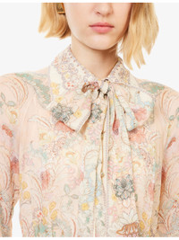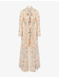 PRODUCT DETAILS - Zimmermann woven midi dress - 100% viscose - Button fastening - Regular fit, collar, self-tie at neck, long sleeves, floral pattern - Dry clean - True to size - Size small: length 60in - Model is 5ft 10in/1.78m and wears a size small - Lightweight, non-stretch Ref: R04552656