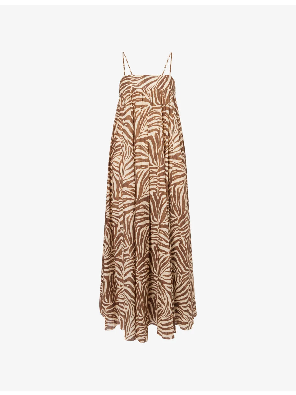 PRODUCT DETAILS - Zimmermann cotton maxi dress - 100% cotton; lining 100% cotton - Regular fit, square neckline, sleeveless, adjustable straps, leopard print, flared hem, lined - Machine wash cold - True to size - Size small: length 51in / 130cm - Model is 5ft 10in/1.78m and wears a size small - Lightweight, non-stretch Ref: R04555148